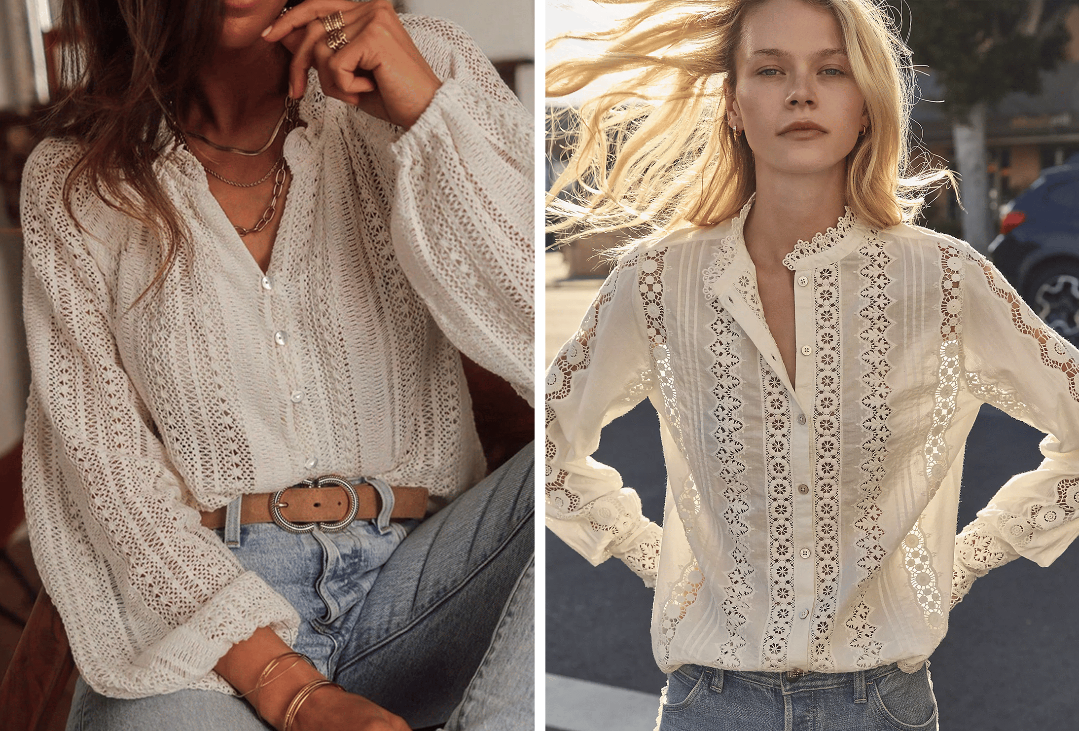 If your spring wardrobe needs one pretty upgrade, start here. From open-knit texture to intricate lace trim, we love how tops like these strike that sweet spot between feminine and effortless. 😍