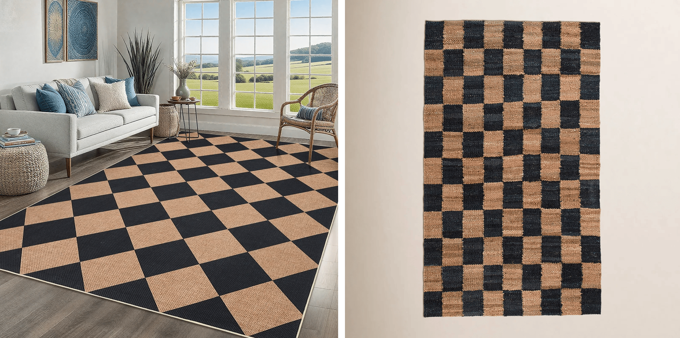 Graphic rugs are having a moment, and this checkerboard style makes a strong statement while still feeling easy to live with. Jute rugs are versatile for indoor or outdoor use, making this bold checkerboard an easy yes for your space. 🙌