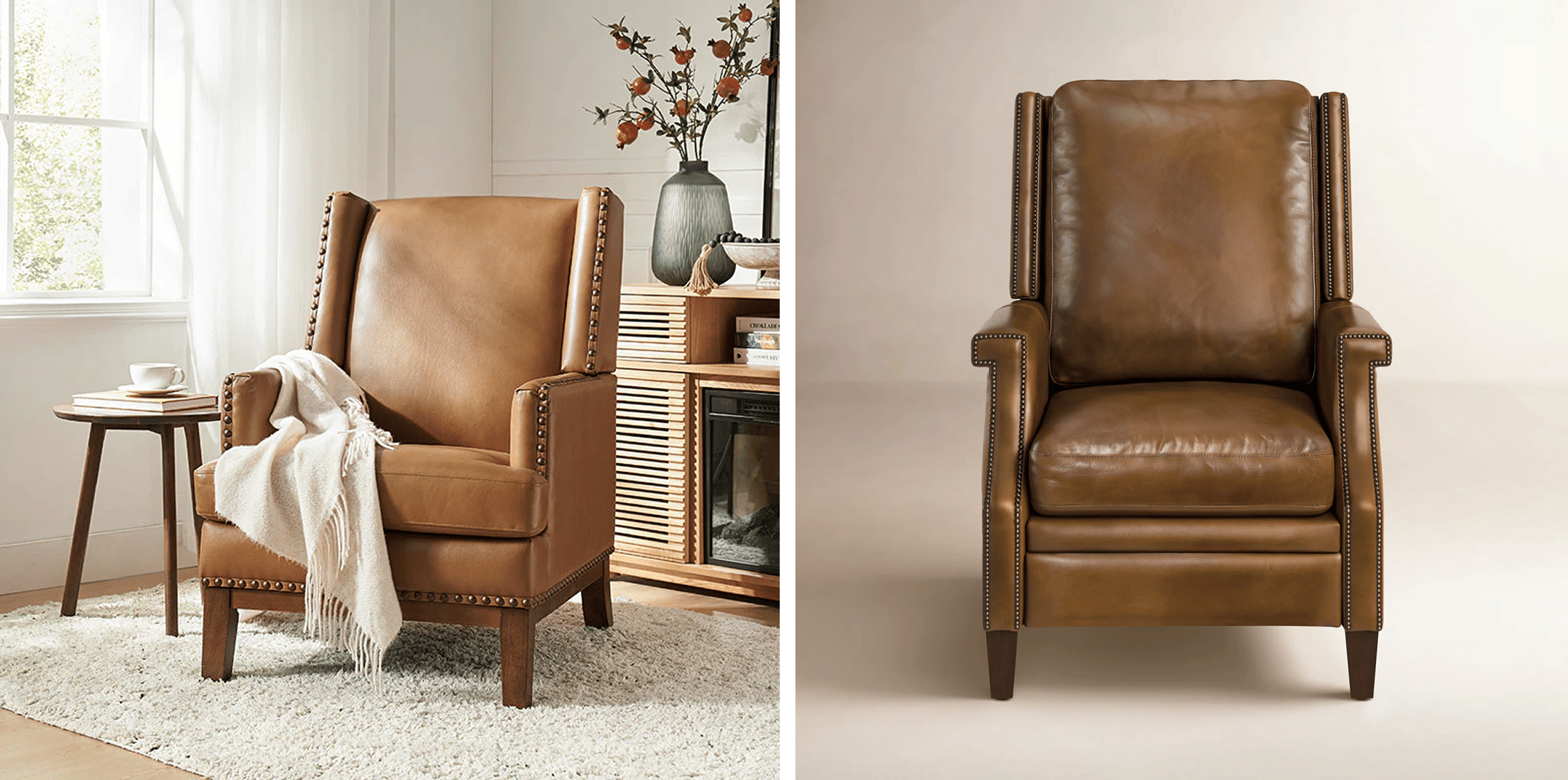 A classic leather armchair with designer-level presence. With its rich color, tailored details, and a silhouette that never goes out of style, this chair is the refined (and cozy!) piece you need for your living room, bedroom, study, or office.