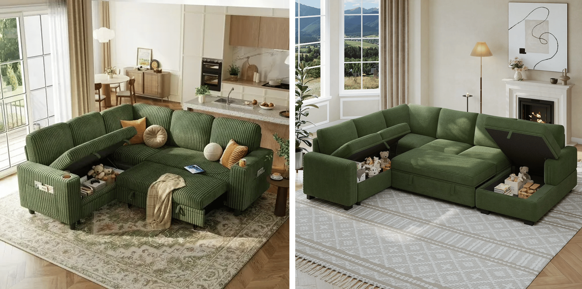 63% less Linsy Home Plush Corduroy Sleeper Sofa — $699.99